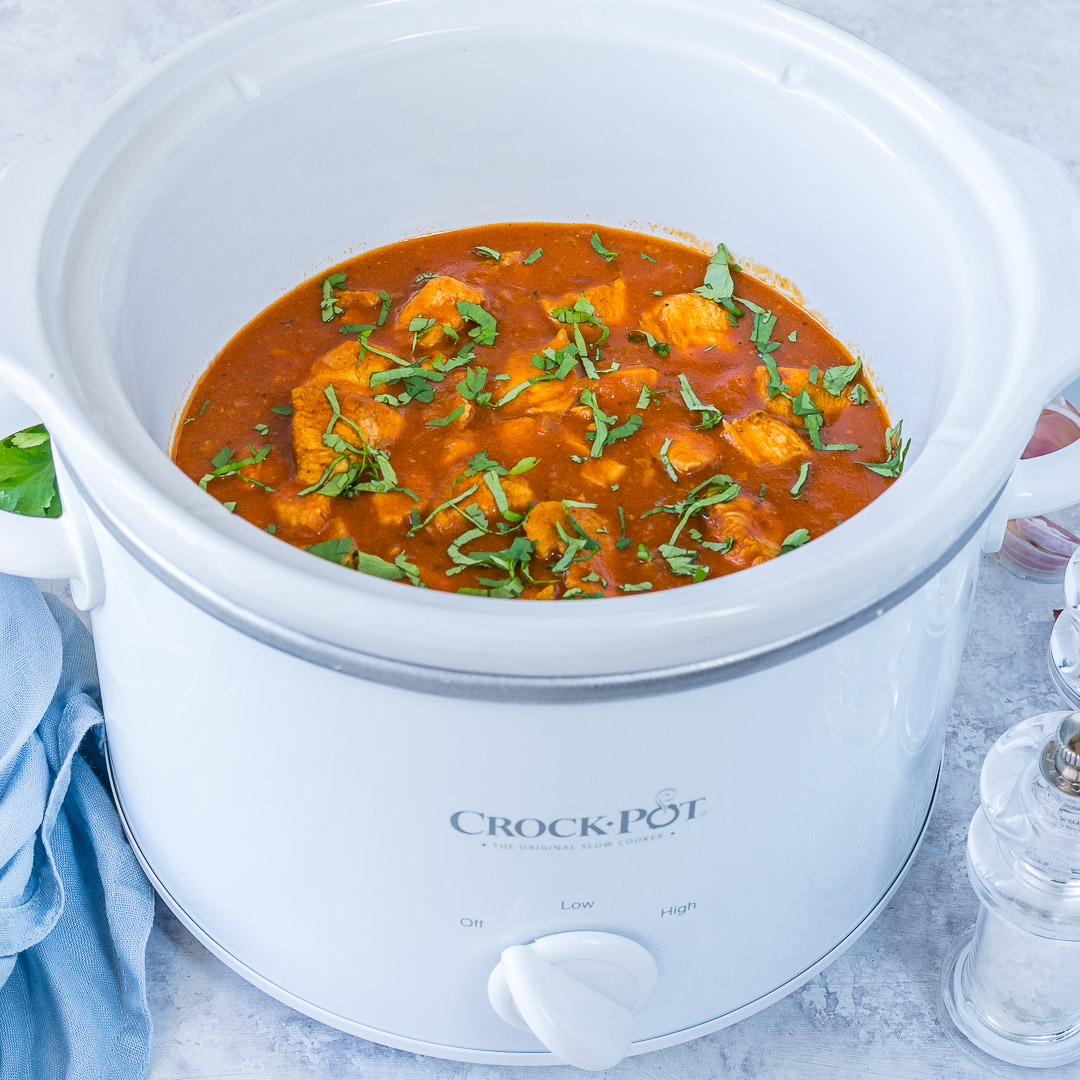 This delicious slow cooker chicken tikka masala is a must try for anyone who loves a good curry. Stir chicken, tomato sauce, yogurt, jalapeno pepper, ginger, cumin, garam masala, black pepper, paprika, garlic, cinnamon, coriander, and salt together in a slow cooker. Chicken tikka masala is traditionally served with white rice and naan to help sop up the delicious sauce. About the author julia is a recipe developer and the founder of savory tooth. This healthy chicken tikka masala recipe is easy to make in a slow cooker, tastes wonderful and with low calories, you will feel good about devouring it!